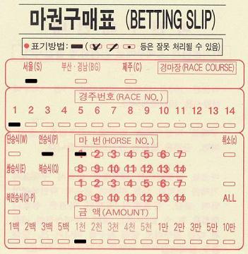 韓国競馬のマークシートは、当然のことながらすべてが韓国語で書かれてあり、日本語のマークシートはありません。